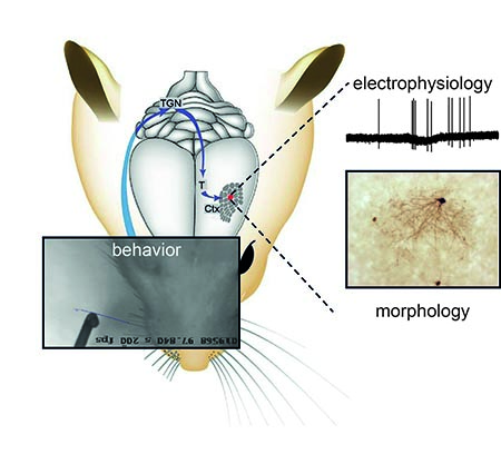 During animal behavior, there is a constant interplay between brain areas involved in sensory processing, decision making and motor output. The whisker system is an obvious example of a sensorimotor system where motor output (movement of the sensory organs (i.e. the whiskers)) has to be integrated with incoming sensory information. In turn, the sensorimotor information guides cognitive behaviour. Our research question focusses on the organisational principles of the cortical microcircuit across distinct areas of the sensorimotor system. Techniques used are behavioral training, (in vivo) electrophysiology in awake, behaving animals (including optogenetics) and post-hoc 3D Neurolucida reconstructions.